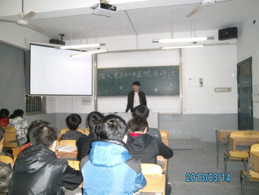 自从王江浩院长在2013年3月13日为200多名学生干部代表作了精彩的讲话后,我院各班级就掀起了“深入学习王院长3.13讲话精神”的热潮。