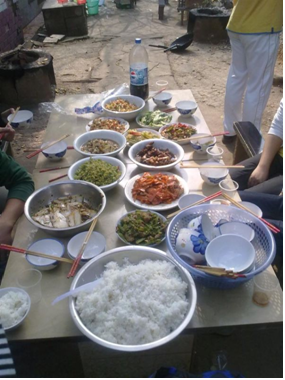 不久,一盘盘香喷喷的菜展就现在大家的面前。学生会主席谌泓成担任的第一组的主厨任务,土豆丝、洋葱炒肉,将一道道家常小菜炒的色香味俱全,大家吃后交口称赞。大家品尝着自己的劳动成果,说着笑着,一片其乐融融之景。